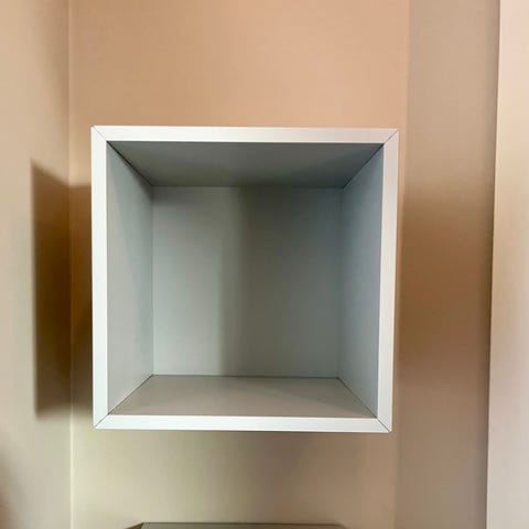Selger en pent brukt EKET hylle fra IKEA, i fargen hvit. Hyllen har fester til å kunne henges på veggen. Veggskinne følger med.