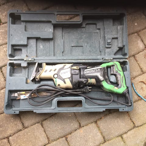 Pakke med kompressor, slange noe verktøy blant annet dykkertpistol