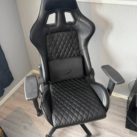 Stolen er veldig god å sitte i og passer perfekt til både gaming, hjemmekontor og vanlig PC-bruk. Den har et stilrent design i svart med grønne detaljer, og er både komfortabel og solid.