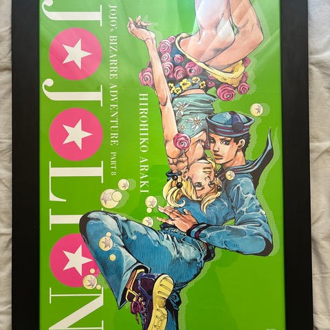 Selger en original plakat fra JoJo’s Bizarre Adventure (Part 6: Stone Ocean), illustrert av Hirohiko Araki.