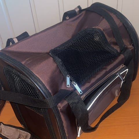Nesten ubrukt bærbar transportbag til dyr. Bagen er 44cm lang, 26cm høy og 25 cm bred. Den har lommer til oppbevaring og lapp med tlf, navn, adresse osv. Framstår som ny, alt fungerer som det skal☺️