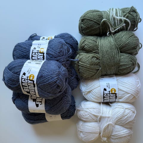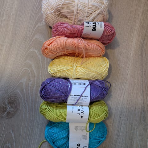 Gult Bomullsgarn og beige syntetisk garn