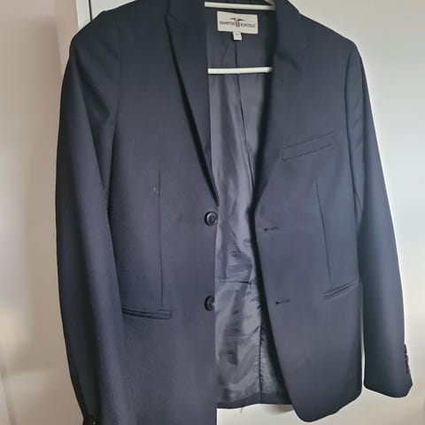 Jakka er mørk blå fra KappAhl. Buksa sort fra HM. Brukt et halvt år av gutt.