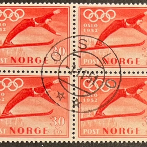 Fin 4-blokk vakkert stemplet Norwex 1955.