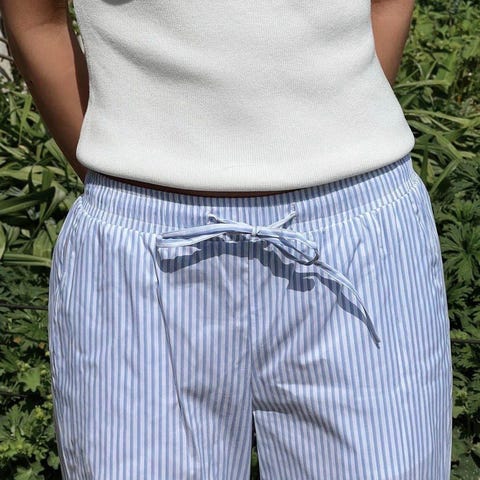 Deilig myk bukse med strikk i livet , snøring og lommer i front