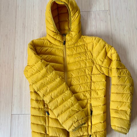 Veldig kjekk lett dunjakke i str 164/14 år. Selges billig da den har 2 små hull oppe på den ene armen. Se siste bilde. Kun kosmetisk og kan fint brukes.