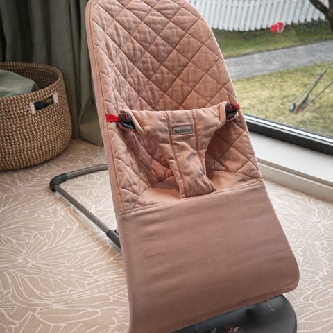 Lite brukt vippestol i materiale som holder seg veldig fint. Behagelig for barnet og vakker rosa tone