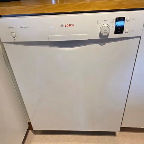 Bosch SMU50M95SK oppvaskmaskin, underbygd modell i rustfritt stål. Maskinen har frontbetjening med display og flere programvalg. Innvendig er det to kurvnivåer med bestikkurv i underkurven og egen holder for tallerkener og glass. Oppvaskmaskinen er beregnet for innbygging under benk og tilkobles vann og avløp i kjøkkenbenk. Egnet for vanlig husholdningsbruk med plass til service, bestikk, gryter og kjøkkenredskaper.