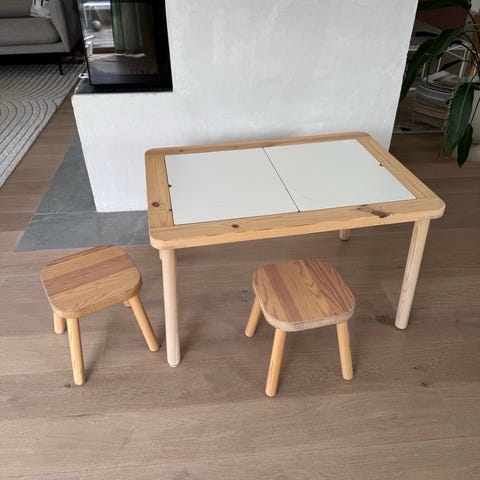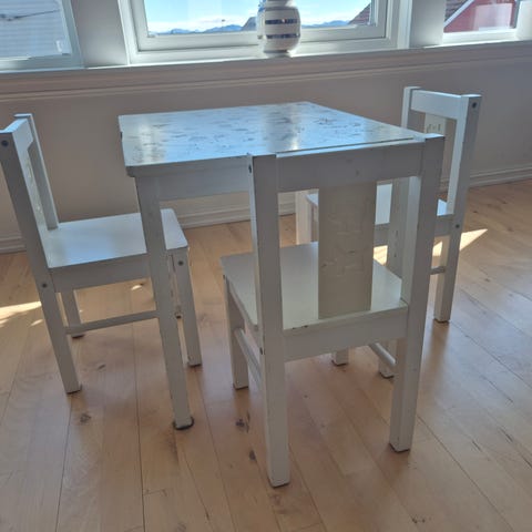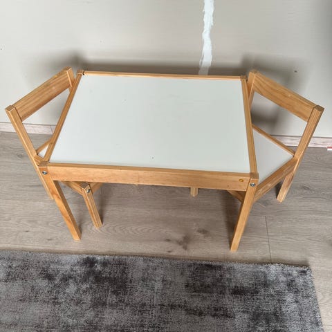 LÄTT Barnebord og 2 stoler, hvit/furu