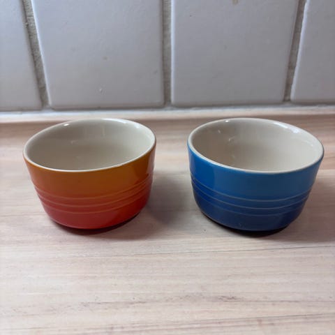 Le Creuset eggekopper i keramikk i tre ulike farger: rød, blå og grå. Eggeglassene har blank glasur utvendig og lys innside. De har fot med Le Creuset-logo og er egnet til servering av kokte egg ved frokost- eller brunchbord. Kan brukes enkeltvis eller som sett.