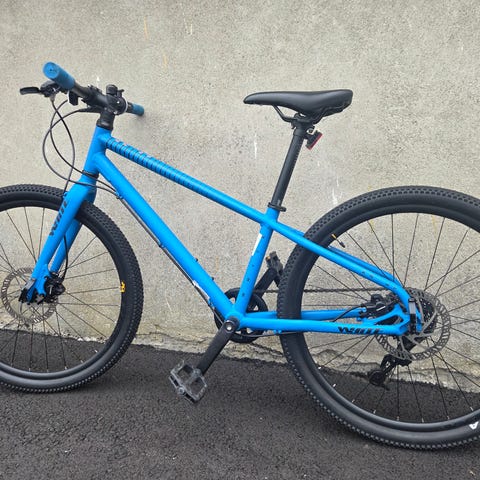 Den ble kjøpt i 2022, og har ikkje blitt brukt på 1år. Den ble ikkje brukt lenge, men den har litt rust, utenom det er den heilt fin, ny smurt og veldig god! nesten ny pris på den er cirka 2800kr. Merida Matts Junior terrengsykkel med 24" hjul. Sykkelen har buet ramme som gir lav innstegshøyde, og er tilpasset barn. Utstyrt med girsystem med Shimano Altus bakgir og felgbremser foran og bak. Sykkelen har skjermer bak og dekk med grovt mønster som egner seg for bruk på grus og lett terreng. Passer som barnesykkel til hverdagssykling og turer på vei og sti.
