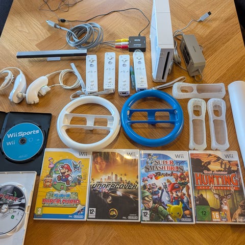 Nintendo Wii spillkonsoller med Wii Fit-brett og tilbehør