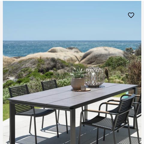Jutlandia Maderup hagebord i fra Jysk. Kjøpt i fjor og pakket ut nå, men passer ikke der vi bor nå. Ny pris på Jysk er 1599. Aluminium så det er vedlikeholdsfritt.