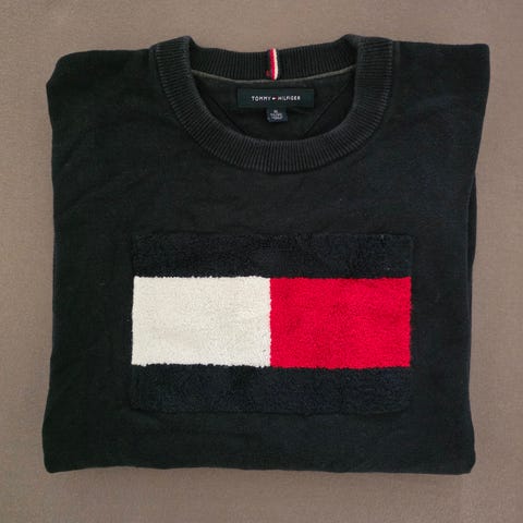 Fred Perry genser for herre i størrelse M. Genseren er laget av bomull og har et flerfarget design med mørk overdel, lys kontraststripe over brystet og mørk nedre del. Klassisk rund hals og lange ermer. Diskret Fred Perry-logo er brodert på brystet. Passer til hverdagsbruk og kan kombineres med både jeans og chinos.
