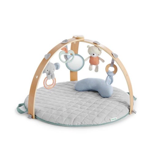 Ubrukt, grå lekematte fra Yngri (Barnas hus), som kan snurpes sammen til en oppbevaringspose, selges.