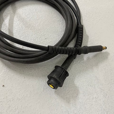 Kärcher feiemaskin i gul farge med manuell skyvestang. Maskinen har to roterende sidebørster foran og en oppsamlingsbeholder for sand, grus og annet tørt smuss. Egner seg til feiing av gårdsplass, innkjørsel, gangvei eller lignende utendørs flater. Håndtaket kan stilles i ulike vinkler (for mer stående eller liggende vinkel når man koster). I tillegg wr er håndtsket sammenleggbart for enklere lagring når maskinen ikke er i bruk.
