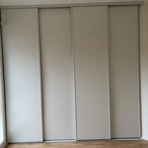 Skapet er delvis demontert, dvs skyvedører er tatt av og skuffer tatt ut, de to skapstammene står hver for seg men er ikke demontert. Ønskes demontering av skapstammer kan det gjøres ved henting. Skapene står i første etasje, parkering ved huset. Noe bærehjelp mulig.