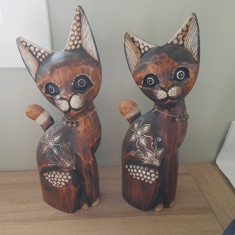 Søkeord: kattefigur, katt dekor, kattepynt, interiør katt, trefigur, shabby chic, pynt, interiør, gave til katteelsker, cat decor, home decor, hyllepynt, figur i tre