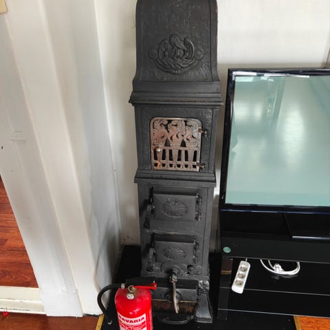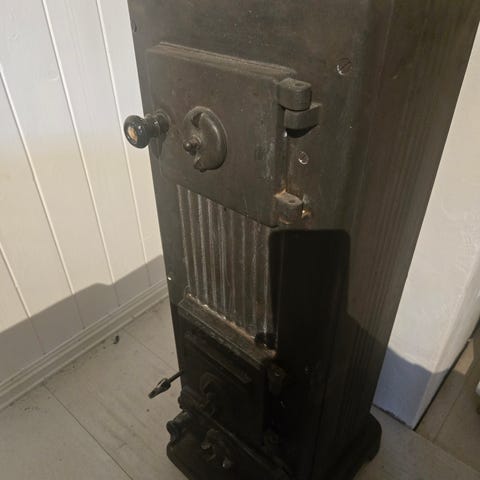 Selger nesten ubruktTrolla vedovn i svart støpejern. Ovnen har stått i kjellerstue som nesten ikke har vært brukt. Ovnen har klassisk rektangulær form med ben, topputtak for røykrør og frontdør med regulerbar luftventil. Sidene har dekorative relieffmønstre.