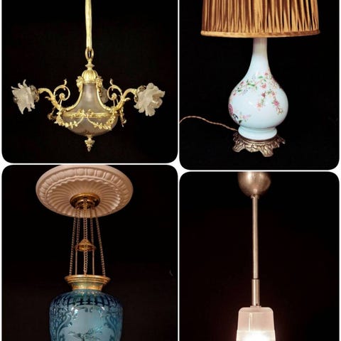 Gamnel, lysekrone, fransk, lampe, plafoni, plafond, lysestaker