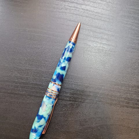 Penn fra Conklin i Misto serien i blue/orange. Dette er en rollerball og den har skrukork.