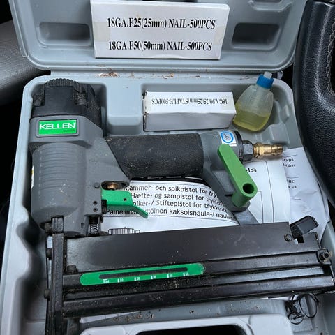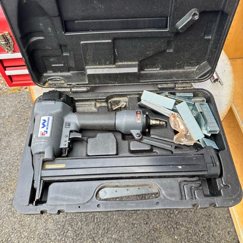 Workman Mini Dykkerpistol for bruk med trykkluft. Leveres i plastkoffert med formtilpasset innredning for verktøyet og tilbehør. Egnet for innskyting av minidykkert/spiker til ulike snekker- og monteringsoppgaver. Tilkobling for luftslange er integrert i håndtaket. Passer for bruk i verksted, garasje eller på byggeplass der det er tilgang på kompressor.