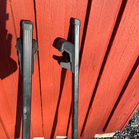 Passer de fleste biler som har takrails uten luft under. Synlig brukt, men funker fortsatt veldig bra. Kan ikke låses.