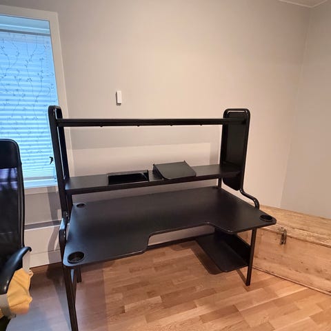 Pult · Skrivebord · Gaming desk · Computer desk · Office desk · IKEA · Table · Desk · Hjemmekontor · Home office · Gaming · PC-bord · Spillbord · Kontorbord · Arbeidsbord · Studentbord · Ungdomsrom · Bord · Møbler · Brukte møbler · Ikea möbler · hovudspelare · Battle station · Streamer · Streaming setup