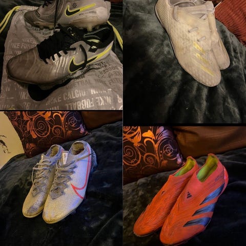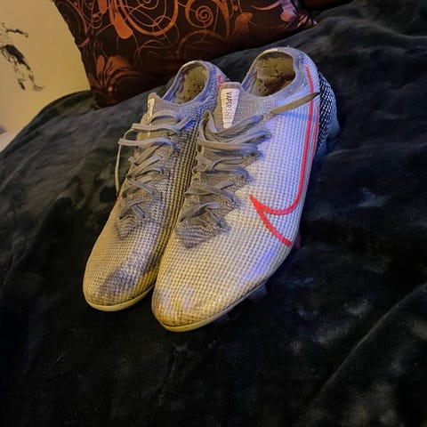 Str: 43, passer 42/5 og. Selger disse Nike Tiempo skona fordi dem ikke blir brukt lenger, dem har ingen store skader bare bruksmerker ifra banen. Så mye i sko igjenn