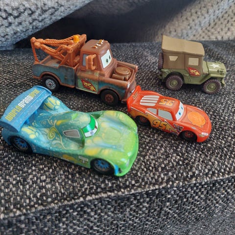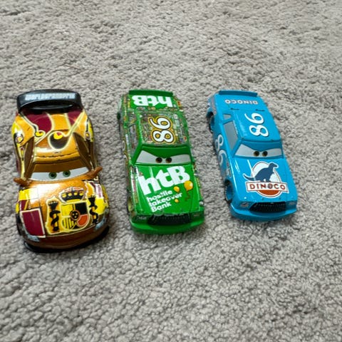 Mattel Disney Pixar Cars små metall lekebiler i flere farger. Settet består av tre biler med motiver fra Cars-universet. Passer som lekebiler for barn eller som samleobjekter. Egnet til lek på gulv, bord eller sammen med bilbaner og andre kjøretøy.