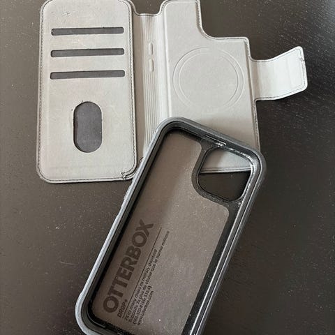 Kvalitetsdeksel fra OtterBox med MagSafe, brukt på iPhone 14 (standard modell). Gir svært god beskyttelse samtidig som det er relativt slankt og behagelig i hånden.
