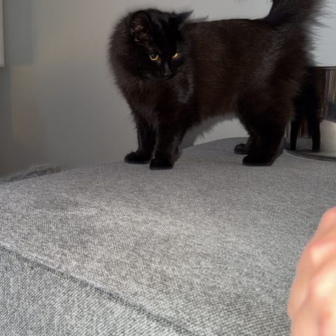 Julius har vært innekatt siden vi fikk ham når var 3 mnd gammel. Julius er en kosete katt og glad i oppmerksomhet og vil gledelig være med deg uansett hvor du går. Glad i kos og liker å bli koset og legger seg gledelig litt nær når har blitt trygg på deg. Han er veldig leken og elsker laserpenn( du får med den blant leker og slikt) Han maler også veldig høyt.