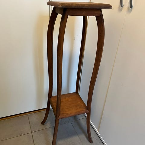 Dette møbelet er et vintage aviskurv-bord, en kombinasjon av et lite sidebord og en magasinholder.