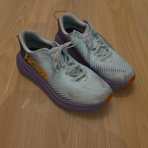 Ikke helt kritthvit lenger og litt slitt under skoene, men mye sko igjen. Rene og fine inni.