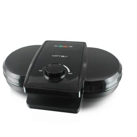 Wilfa vaffeljern dobbelt i svart utførelse. Vaffeljernet har to stekeplater med rutemønster for firkantede vafler. Det er utstyrt med non-stick beleggsplater og dryppkant som samler opp overskudd av røre. Enheten har håndtak foran og regulering på toppen for justering av stekeresultat. Passer til tilberedning av vafler på kjøkkenbenk hjemme. Strømtilkobling via vanlig stikkontakt.