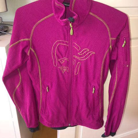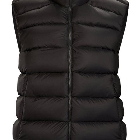Arcteryx sin berømte atom vest. Med isolasjon foran og bak, og litt mer pustende materiale på sidene. Den har broderier på bryst og rygg, men det påvirker ikke bruken.