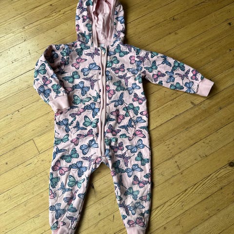 Newbie heldress for jente i størrelse 86. Heldressen er laget i bomull og har et flerfarget blomstermønster. Modellen har hette og lange ermer og ben, med myke ribbekanter ved håndledd og ankler. Passer til barn ca. 12–18 måneder, avhengig av barnets høyde. Egnet som myk hverdagsdress inne eller ytterdress på vår / sommer
