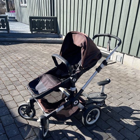 Kan brukes både i sittende og liggende stilling. Håndtak låses ikke i posisjon for kjøreretning, men dette kan helt sikkert fikses.