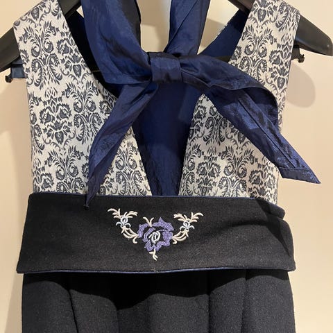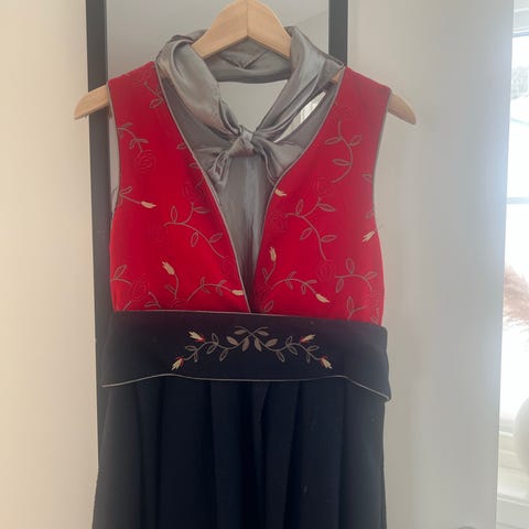 Lekker sjelden farge, med cape og veske. Følger med en brosje/ sølje/ pynt som kan brukes på skjorta eller kappe. Har byttet låsen på kappen da den røk. Er lagt ned nå