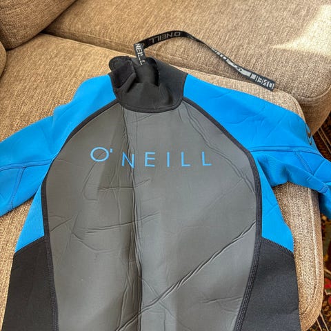 Sway våtdrakt for barn i størrelse 14. Drakten er i blå og gul farge med lange ermer og lange ben. Glidelås i ryggen for enklere av- og påkledning. Egnet til bruk i vannaktiviteter som bading, surfing eller andre vannsporter der man ønsker ekstra isolasjon og beskyttelse mot kaldt vann.