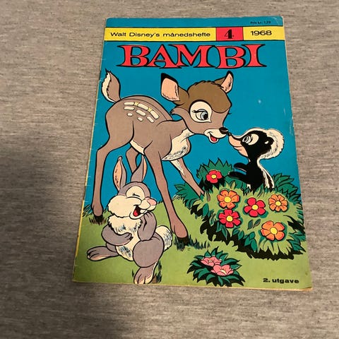Trampe kaninen fra filmen Bambi, gammel pins.