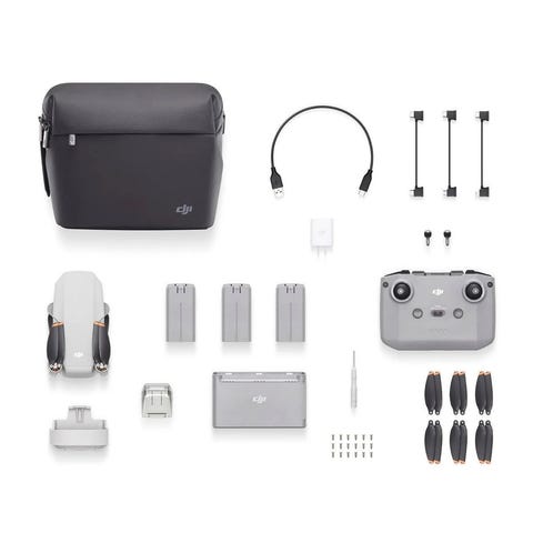 Settet inkluderer sammenleggbar drone, fjernkontroller, propeller, kabler, veske og ekstra batterier med ladehub. Dronen er kompakt og lett, med utfellbare armer og fire propeller. Den er egnet til foto- og videoopptak fra lufta, og kan brukes til fritidsflyging, reiser og enkel dokumentasjon fra luften.