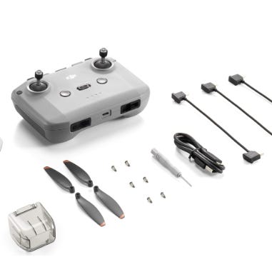 Vesken er tilpasset dronen og tilbehøret, slik at utstyret kan oppbevares og transporteres samlet. Ekstra propeller og batterier gir mulighet for lengre brukstid mellom hver lading. Fjernkontrollene brukes til styring av drone og kamerafunksjoner under flyging.