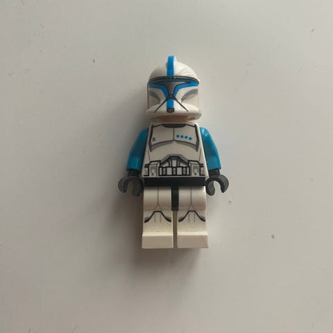 Captain Rex minifigur fra LEGO Star Wars, utgitt i 2013. Figuren kommer i den ikoniske hvit- og blå rustningen og har stoffdeler på plass. En populær figur for samlere, men passer også fint som del av et Star Wars-oppsett.