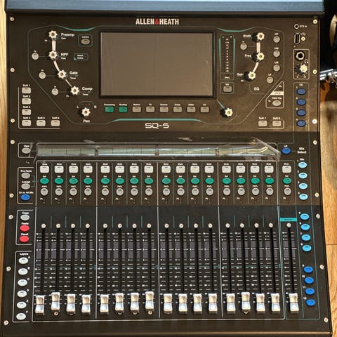 Allen & Heath Qu-16 digital mikser og et sett høyttalere.