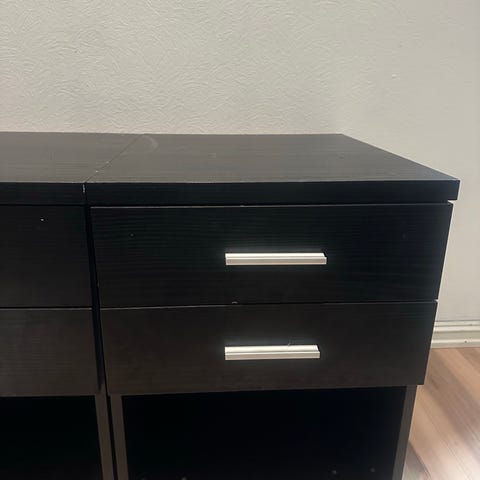 Selger en liten kommode fra IKEA i sort. Perfekt til oppbevaring av klær, småting eller som nattbord.