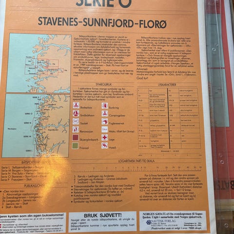 Båtsportkart Utsira–Sjernarøyane–Sauda sjøkartsett. Kartene dekker kyst- og fjordområder fra Utsira via Sjernarøyane til Sauda, med detaljerte sjøkart i flere blad. Settet inneholder nummererte kartblad, hvor enkelte numre kan mangle i henhold til oversikten på vedlagt lapp. Egnet som navigasjonsgrunnlag og oversiktskart for fritidsbåt og planlegging av seilaser i området.