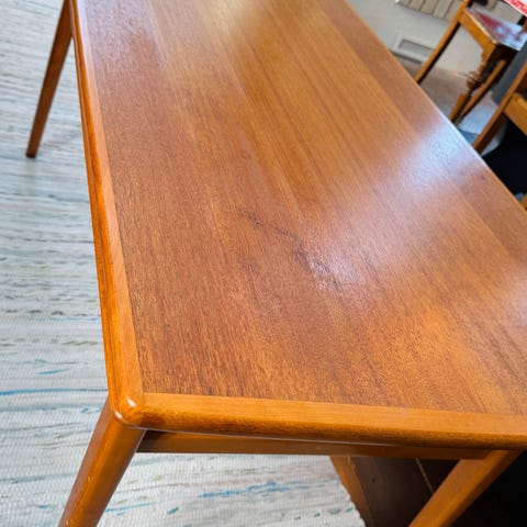 Flott og solid spisestuebord i teak. Kan sikkert nyte godt av en runde med olje, så blir det superflott igjen.