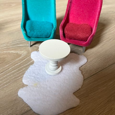 Lundby Stockholm dukkehus hagemøbler/spisebord med stoler