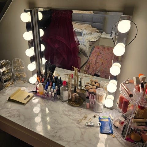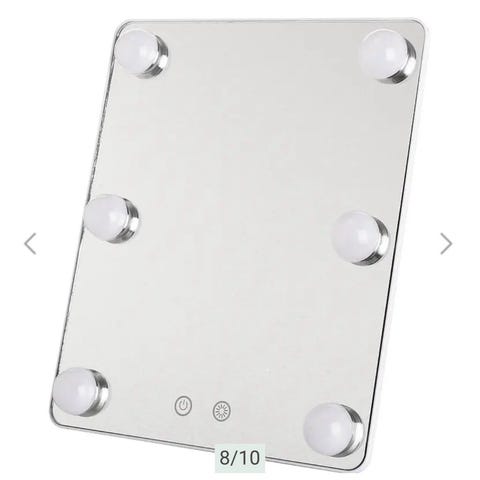 Lettplassert sminkespeil 46 x 36 cm som lyser med et mildt skinn.